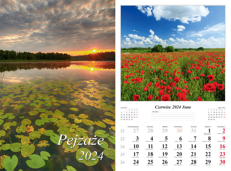 Kalendarz 2024 Ścienny wieloplanszowy Pejzaże