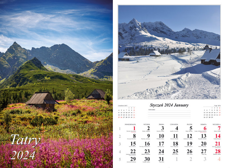 Kalendarz 2024 Ścienny wieloplanszowy Tatry
