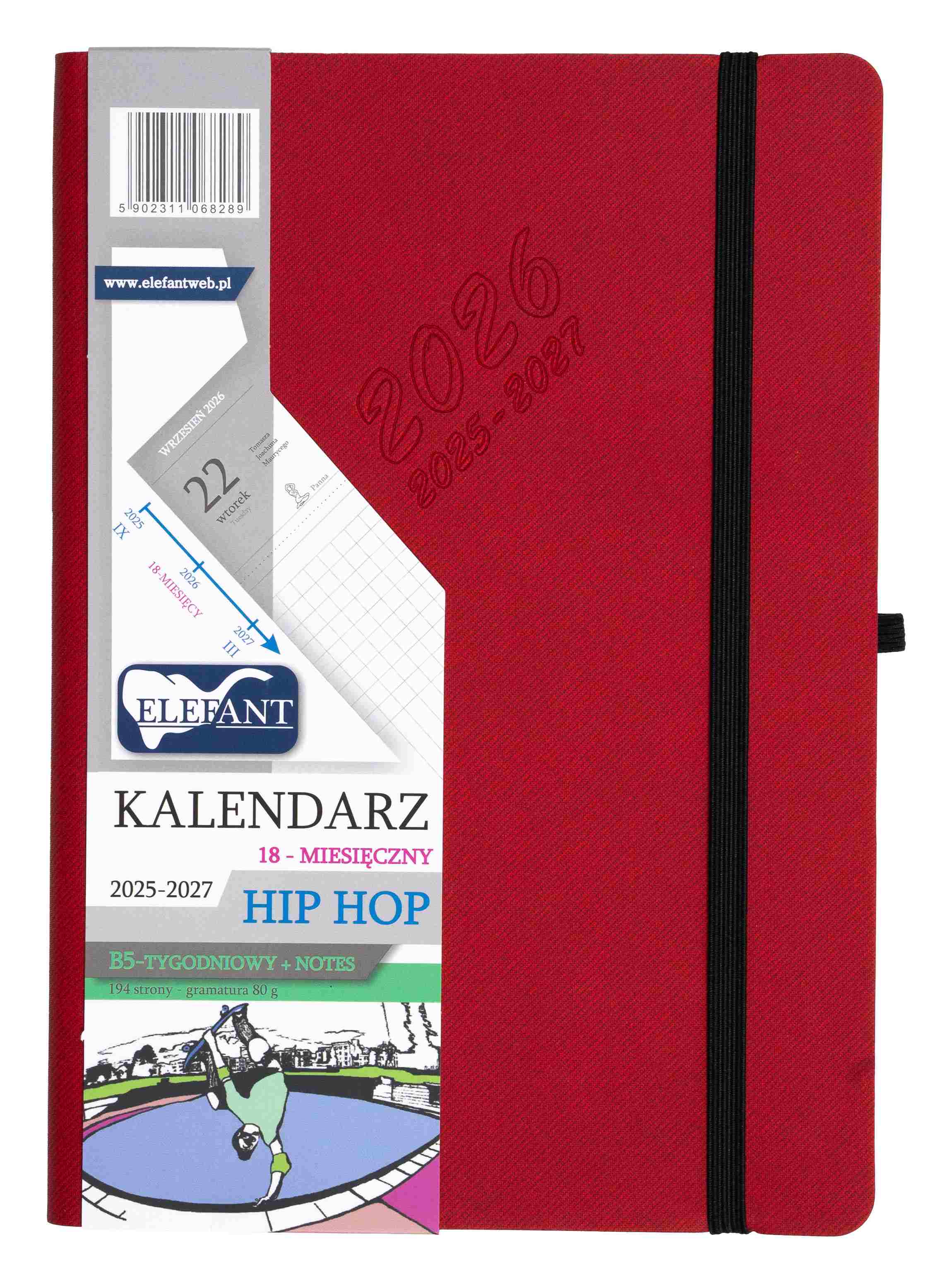 czytelny układ kalendarza Hip Hop: tydzień na stronie w układzie z lewej strony kalendarz tydzień na jednej stronie, a z prawej notes w kratkę