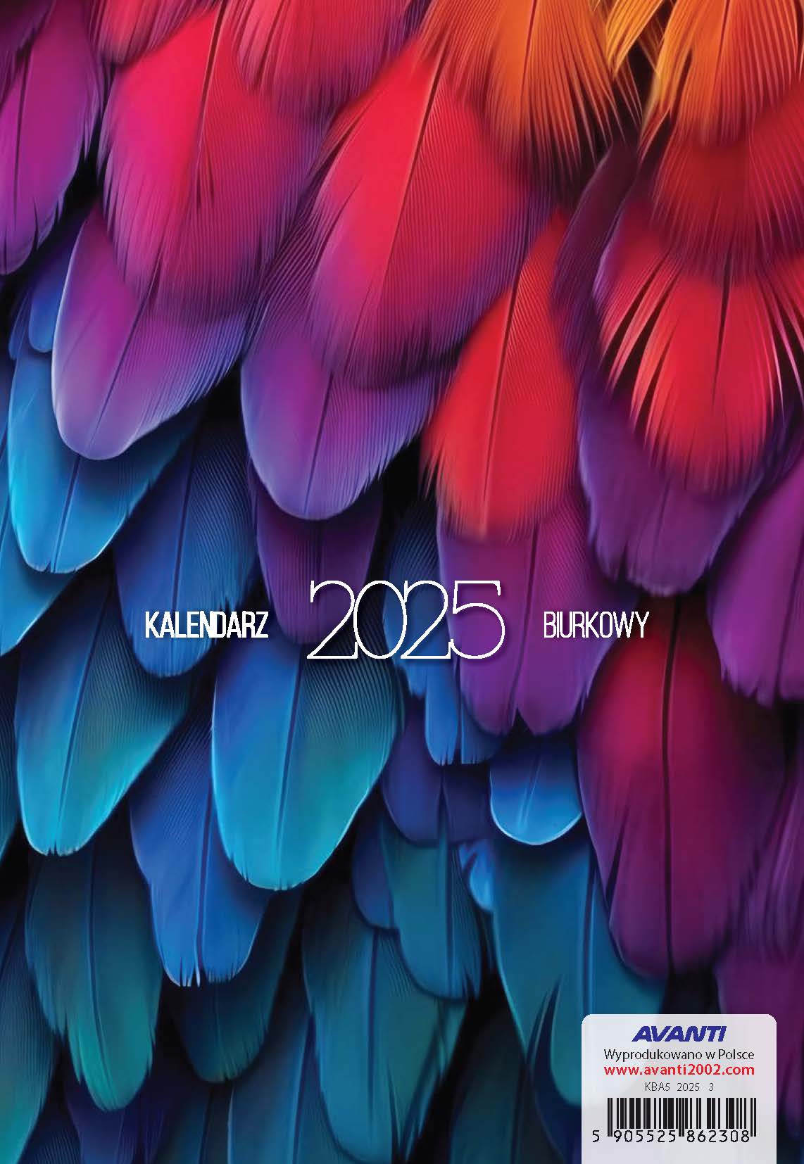 Kalendarz Biurkowy A5 14x21 cm, tydzień na stronie, oprawa spiralna z podstawą, 8 wzorów okładek