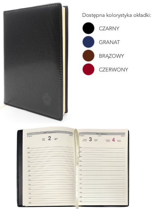 Zaprezentuj swój profesjonalizm z naszym klasycznym, a zarazem nowoczesnym Kalendarzem Terminarzem A5 na 2025 rok. Ten wyjątkowy kalendarz został zaprojektowany z myślą o tych, którzy cenią sobie pragmatyzm i minimalizm, jednocześnie nie rezygnując ze stylu. Jego prosta, ale elegancka estetyka idealnie komponuje się z każdym środowiskiem pracy i stylem życia. Kalendarz ma 352 strony i twardą, skóropodobną okładkę, która chroni wnętrze przed zniszczeniem, zapewniając jednocześnie elegancki wygląd. Układ środka jest niezwykle funkcjonalny - każdy dzień ma swoją stronę, a sobota i niedziela dzielą jedną stronę, co ułatwia organizację i planowanie. Wewnątrz kalendarza znajduje się tasiemka do oznaczania stron, co pozwala na szybkie odnajdywanie ważnych notatek lub ostatnio zapisanej strony. Druk w dwóch kolorach na papierze o gramaturze 60 g/m w kolorze ecru sprawia, że kalendarz jest czytelny i estetyczny. Kalendarium w języku polskim i angielskim zawiera numerację dni i tygodni oraz podwójne imieniny. Dodatkowe strony na notatki, telefony kierunkowe, skorowidz alfabetyczny oraz daty imienin i świąt zwiększają jego funkcjonalność. Przejrzysty układ i wystarczająca przestrzeń na notatki umożliwiają swobodne planowanie każdego dnia, co czyni nasz kalendarz idealnym narzędziem dla każdego, kto ceni sobie porządek i styl.