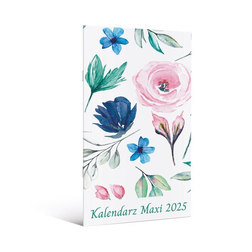 Kalendarzyk tygodniowy w oprawie zeszytowej na zszywce, w dwóch różnych grafikach okładek (kwiaty, papugi), 64 strony.