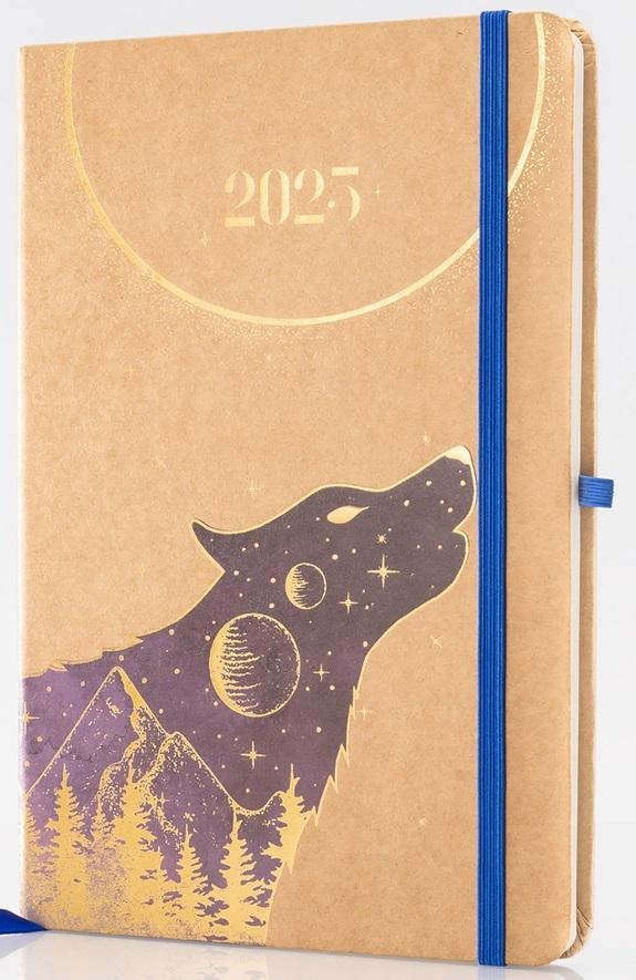 Kolekcja: Kraft, format: A5, wymiary okładki: 207x141 mm, układ: dzień na stronie, ilość stron: 352, oprawa: twarda, materiał: papier, gramatura papieru: 80g, kolor papieru: chamoise , dodatki: plan roku 2025, ważne wydarzenia, skorowidz adresowy, notatki, pionowa gumka zamykająca: czarna, wstążka: czarna, gumka na długopis: nie, zaokrąglone rogi: tak, wyklejka: czarna, koperta: nie, dostępne kolory: czarny, złoty