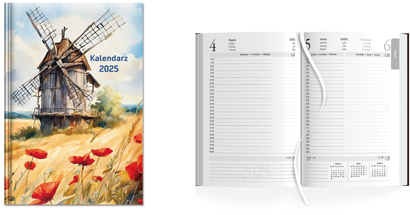 Opakowanie Kalendarz 2025 książkowy B6 dzienny Młyn i maki