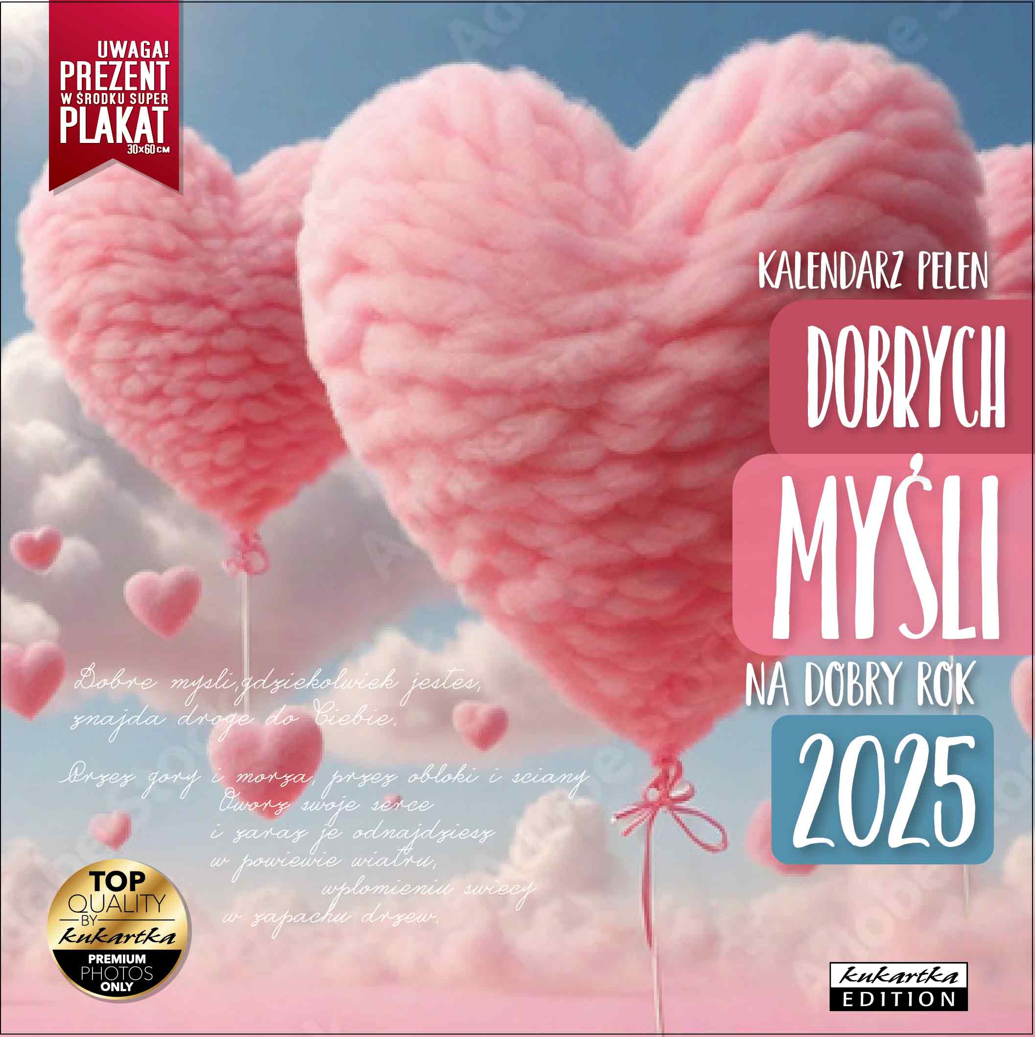 Kalendarz 2025 Dobrych Myśli Kwadratowy kalendarz ścienny na rok 2025 z serii "Dobre myśli". Każdy miesiąc cieszy pięknym zdjęciem oraz sentencją wprawiającą w lepszy nastrój. Taki kalendarz to idealny prezent na Mikołaja lub pod choinkę, trudno też lepiej zacząć rok!! Kalendarz po rozłożeniu ma wymiary 30x60 cm - górny kwadrat wypełnia zdjęcie, a dolny kalendarium. PREZENT: w środku kalendarza znajdziecie plakat ze zdjęciem o wielkości 30x 60 cm! Specyfikacja: Wielkość: 30 x 30 cm (po rozłożeniu 30 x 60 cm) Gratis: plakat Styl: cytaty, nowoczesny, klasyczny, zdjęciowy