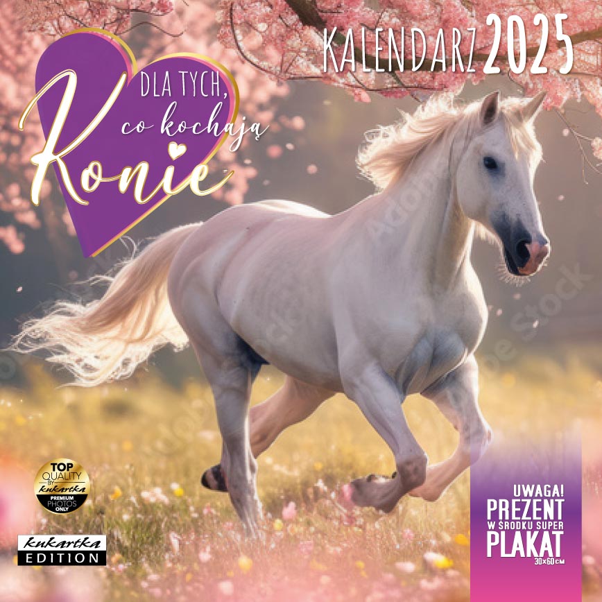 Kalendarz 2025 Konie Kwadratowy kalendarz ścienny na rok 2025 "Konie". Każdy miesiąc cieszy pięknym zdjęciem konia, który będzie wspaniałą ozdobą Waszego domu. Taki kalendarz to idealny prezent dla miłośników koni. Kalendarz po rozłożeniu ma wymiary 30x60 cm - górny kwadrat wypełnia zdjęcie, a dolny kalendarium. PREZENT: w środku kalendarza znajdziecie plakat ze zdjęciem konia o wielkości 30x 60 cm! Specyfikacje: Wielkość: 30 x 30 cm (po rozłożeniu 30 x 60 cm) Gratis: plakat Styl: cytaty, nowoczesny, klasyczny, zdjęciowy