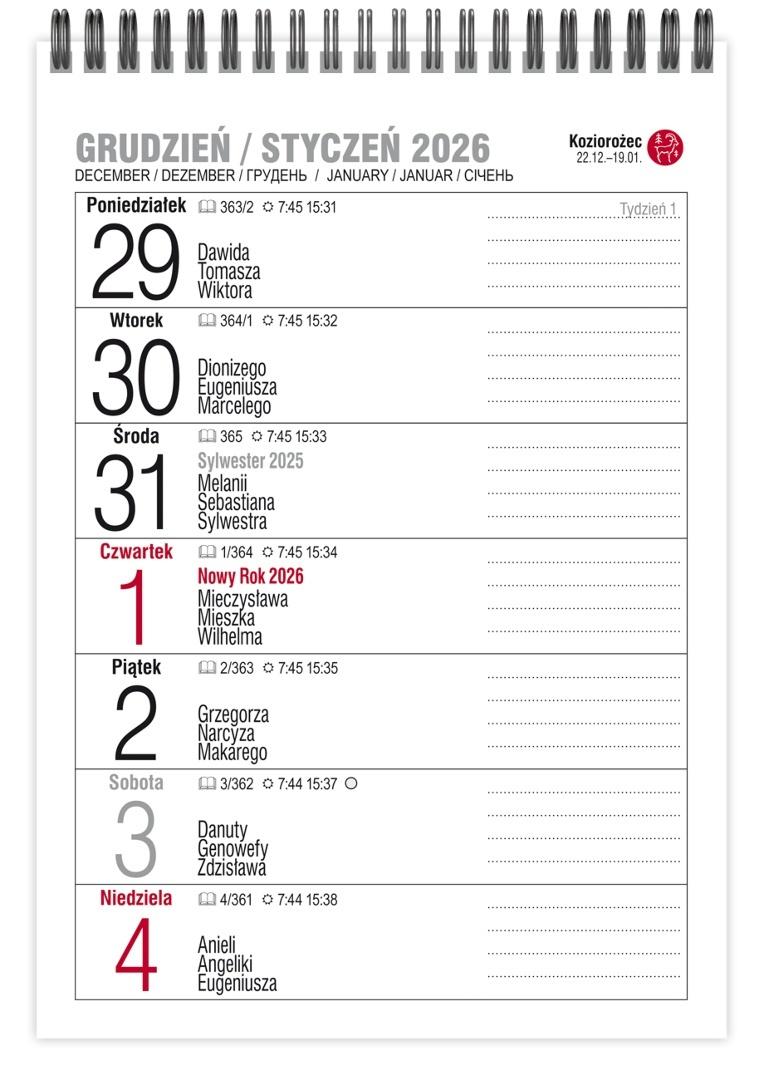 Kalendarz 2026 Biurkowy A5 TYGODNIOWY PIONOWY MINI.
