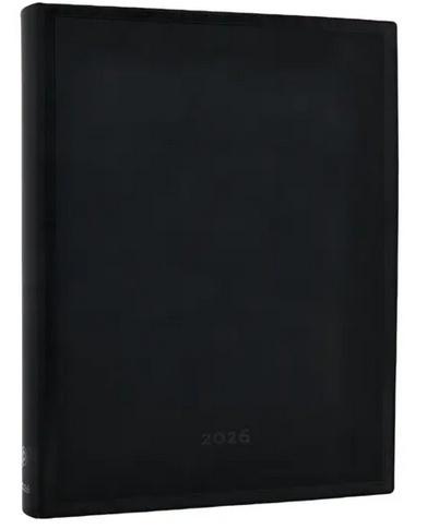 Klasyczna czarna okładka z delikatnie tłoczoną ramką na brzegu oprawy,