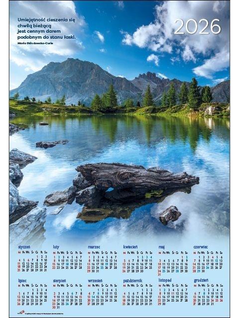 Szukasz kalendarza, którego widok da Ci chwilę wytchnienia? Powieś na ścianie kalendarz plakatowy Góry z pięknym cytatem Umiejętność cieszenia się chwilą bieżącą jest cennym darem podobnym do stanu łaski" autorstwa Marii Skłodowskiej-Curie. To praktyczny i piękny pomocnik na każdy dzień.
