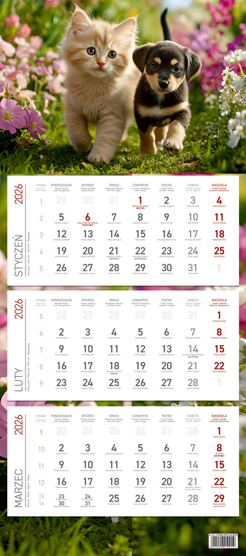 Kalendarz 2026 ścienny trójdzielny Przyjaciele