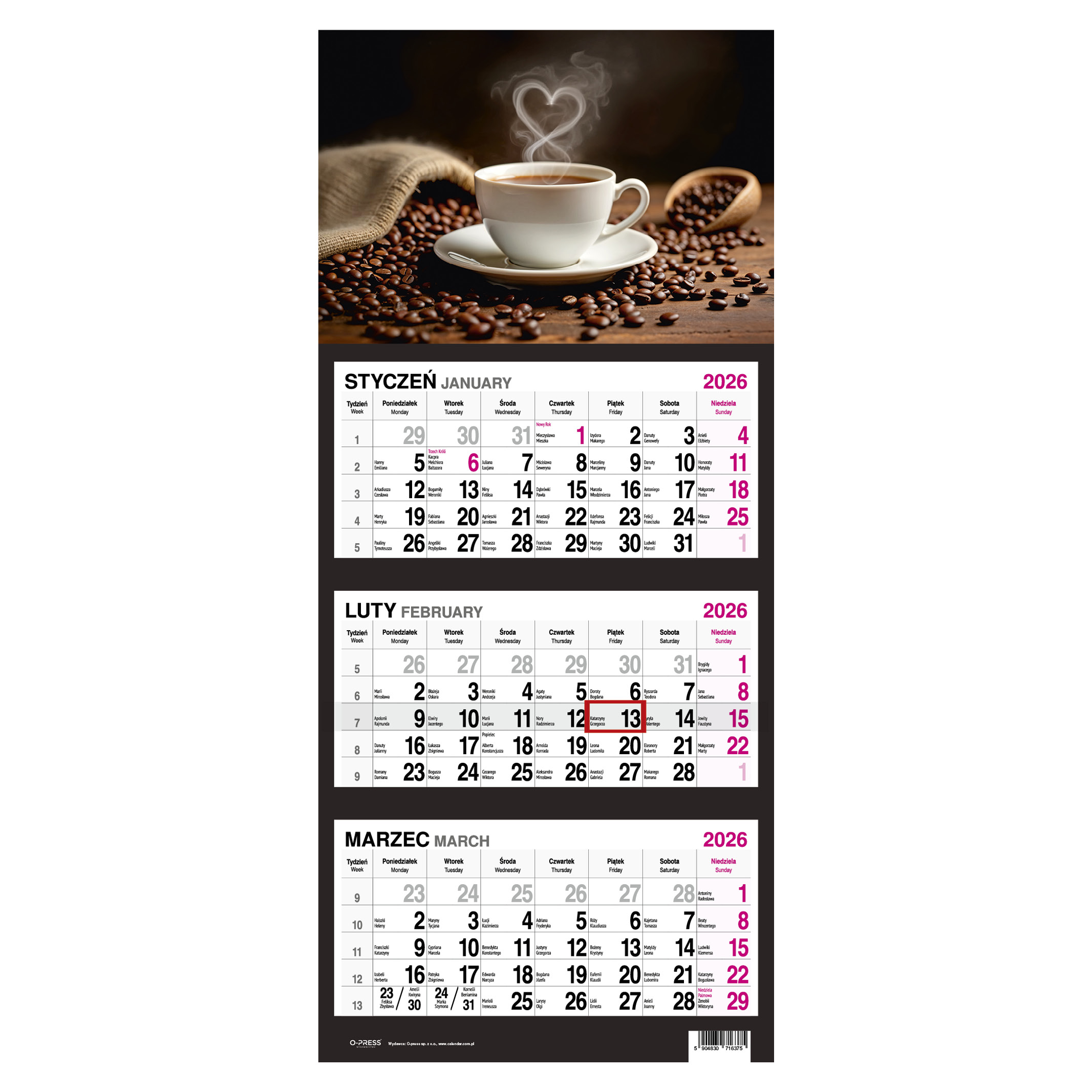 Opakowanie Kalendarz 2026 Trójdzielny Kawa