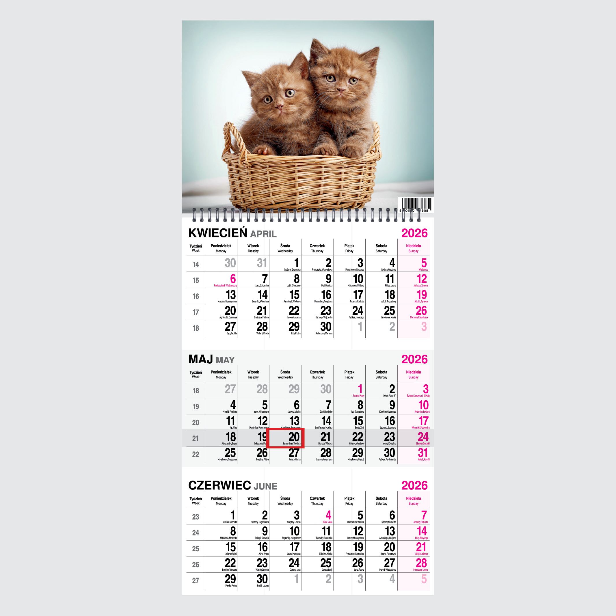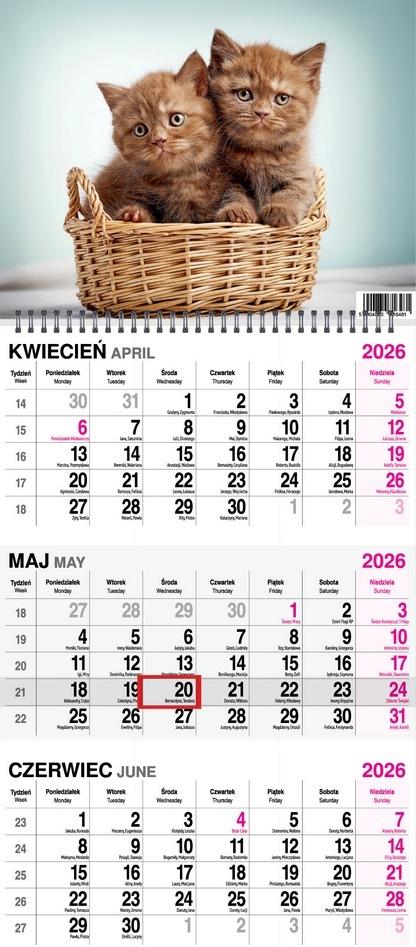 - Zawiera czytelne kalendarium z imieninami i świętami w języku polskim