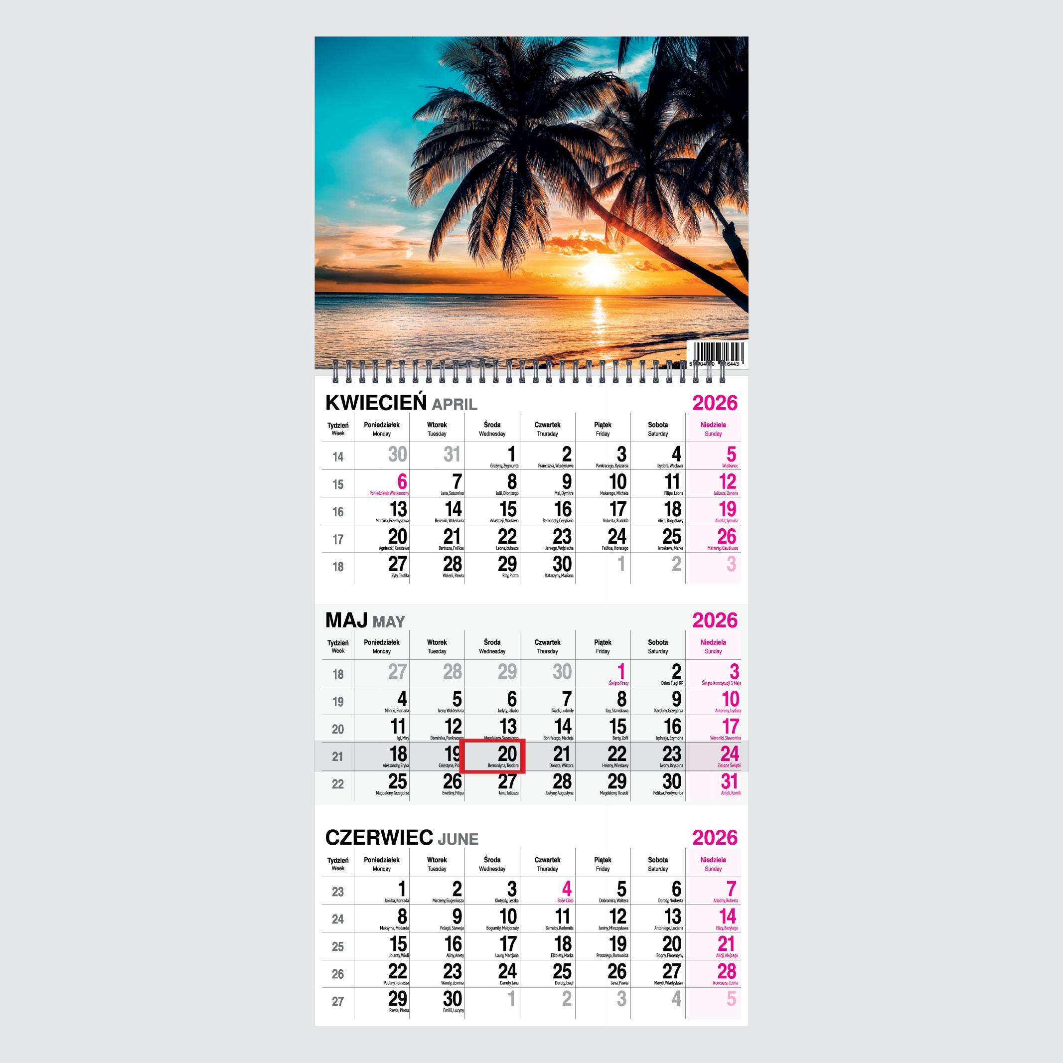 Kalendarz został połączony solidną spiralą z eurozawieszką, która umożliwia łatwe i bezpieczne zawieszenie go na ścianie. Format 280x635 mm gwarantuje czytelność kalendarium oraz komfort użytkowania, a spiralne łączenie zapewnia wygodę podczas przewracania stron i estetyczny wygląd.