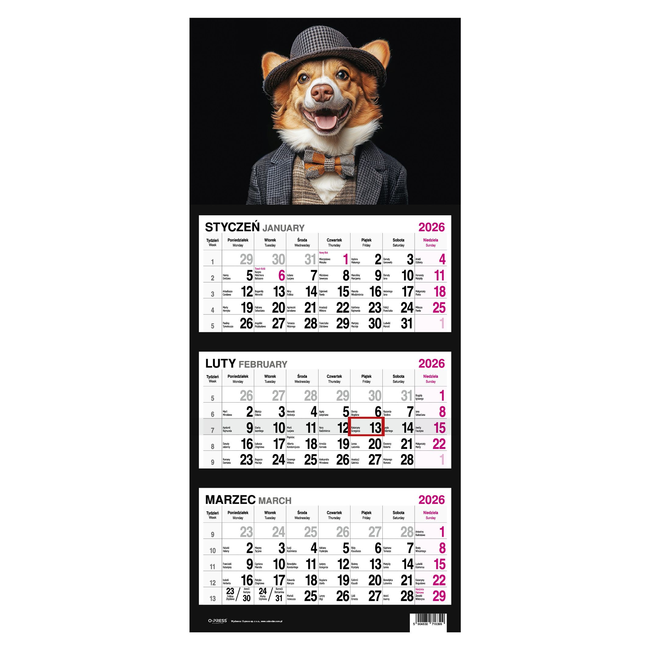 Kalendarz 2026 Trójdzielny Pies