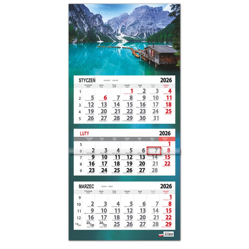 Opakowanie Kalendarz 2026 trójdzielny płaska główka Lazur