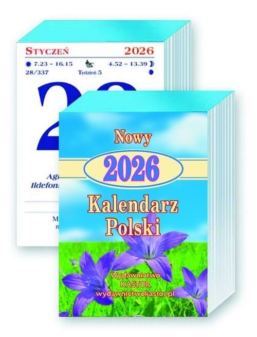 – awers: kalendarium jednodniowe, do pięciu imion solenizantów, miejsce na notatki, numeracja dni i tygodni roku, godziny wschodu i zachodu Słońca oraz Księżyca, fazy Księżyca, znak zodiaku, aforyzm lub przysłowie;