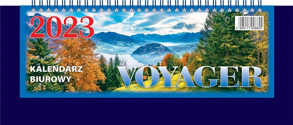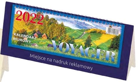 Podłużny kalendarz biurowy stojący. Podział godzinowy dnia pracy. Kalendarium skrócone aktualnego miesiąca na każdej stronie.