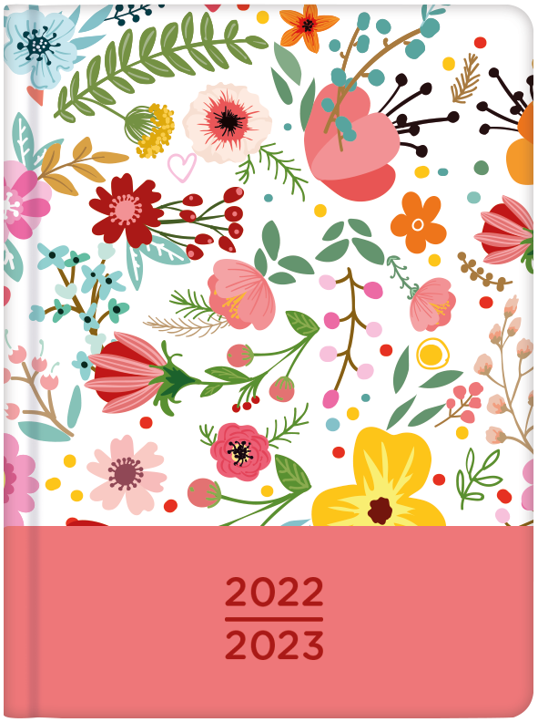 o kalendarz książkowy 2022/2023, o 18 miesięcy: lipiec 2022 - grudzień 2023, o format: B6, o wymiary: 12,5 x 17 x 1,5 cm, o układ: tygodniowy, o wewnątrz: wstążka, plan roku 2022, notatnik, adresownik, linijka, kalendarium dodatkowe na 2022-2023, o gramatura: 120 g/m2, o oprawa: twarda, gąbkowana