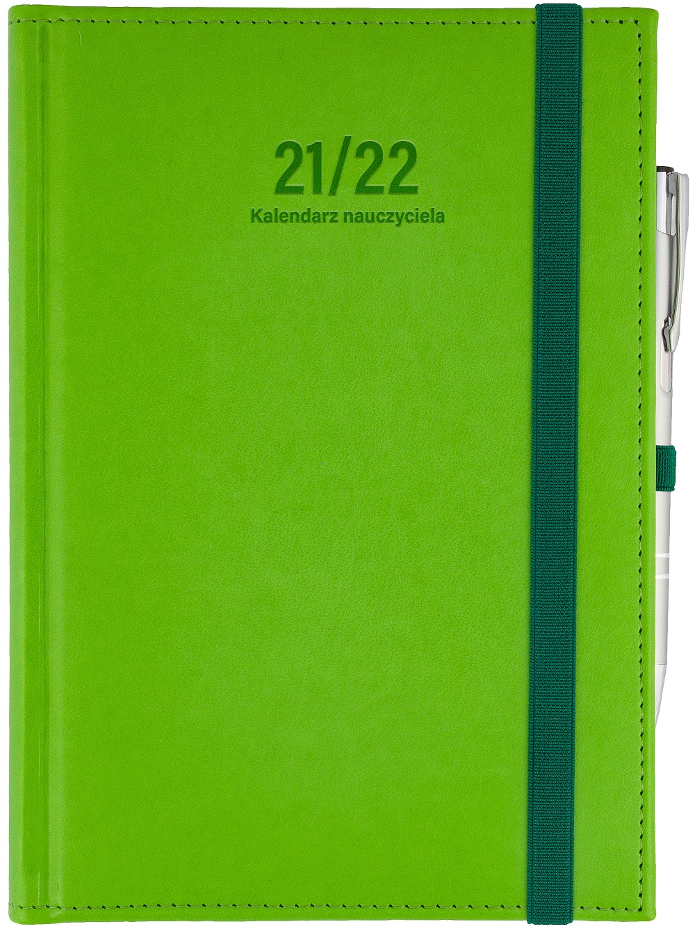 Kalendarz A5 tygodniowy nauczyciela w oprawie Nebraska zamykanej na gumkę. 176 stron. Papier biały. Format bloku 143x204 mm. Druk szaro - bordowy. Kalendarium od 21.06.21 do 04.09.22 r. Rozbudowana część informacyjna z tabelami przydatnymi w pracy pedagoga. Długopis za dodatkową opłatą.