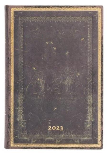 Kalendarz 2023 ekskluzywnej marki Paperblanks. Każdy dzień rozplanowany jest na osobnej stronie (włącznie z sobota i niedzielą). Kalendarium w języku angielskim. W środku miejsce na notatki, roczny planer, oznaczone wybrane święta międzynarodowe, mini kalendarium, międzynarodowe numery telefonów, strefy czasowe, dodatkowe informacje, mini skorowidz na adresy i telefony. Oprawa twarda. Zamkniecie na gumkę. Wymiary 95x140 mm (format mini), 416 stron. Kalendarz posiada 2 satynowe wstążki jako zakładki. Na końcu na wewnętrznej stronie okładki jest koperta na drobne notatki czy paragony. Papier ekologiczny, bezkwasowy, gramatura 80. Całość zdobi piękna okładka inspirowana skórzanymi oprawami renesansowych książek.