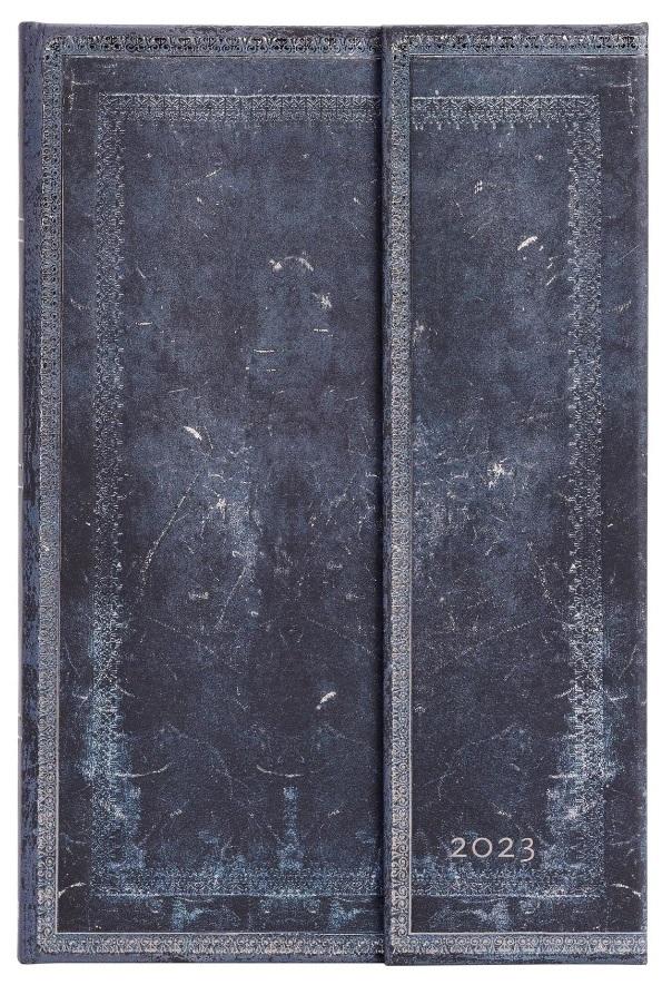 Kalendarz 2023 ekskluzywnej marki Paperblanks. Format maxi typu horizontal - cały tydzień rozplanowany jest na 2 stronach. Kalendarium w języku angielskim. W środku miejsce na notatki, roczny planer, oznaczone wybrane święta międzynarodowe, mini kalendarium, międzynarodowe numery telefonów, strefy czasowe, dodatkowe informacje, mini skorowidz na adresy i telefony. Oprawa twarda. Zamkniecie na magnes. Wymiary 135x210 mm, 160 stron. Kalendarz posiada 2 satynowe wstążki jako zakładki. Na końcu na wewnętrznej stronie okładki jest koperta na drobne notatki czy paragony. Papier ekologiczny, bezkwasowy, gramatura 100. Okładka inspirowana jest marokańską skórą, używaną od XVI-go wieku do oprawy wartościowych książek.