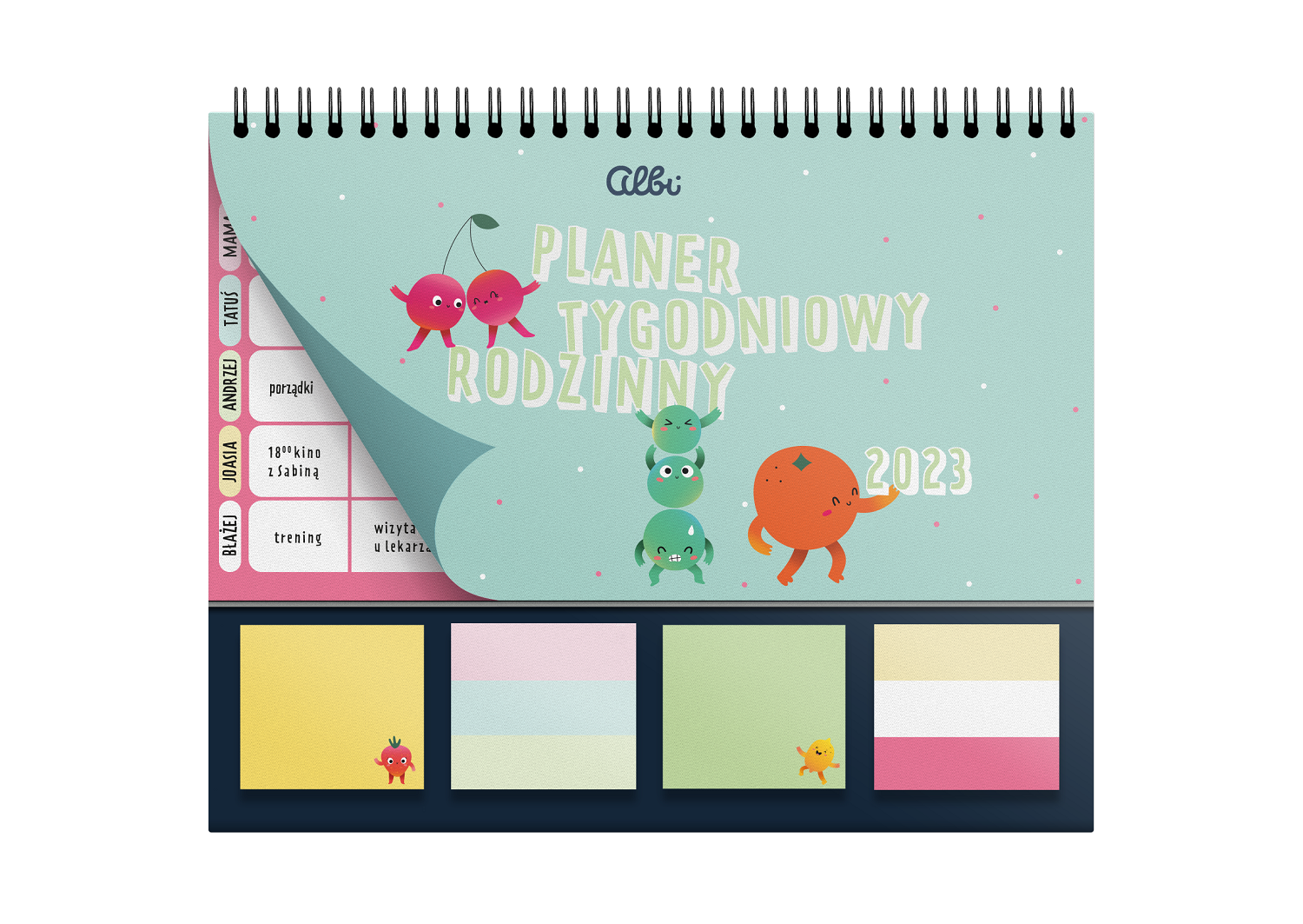 Kalendarz rodzinny Mój szczęśliwy rok, stojący, z karteczkami samoprzylepnymi, motyw: miętowy.