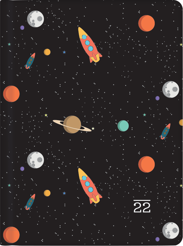 12,5 x 17 x 1,5 cm, układ tygodniowy, wewnątrz: plan roku 2022, notatnik, adresownik, linijka, kalendarium dodatkowe na 2023-2026