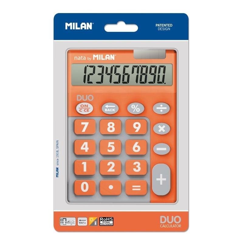 Kalkulator 10-pozycyjny z dużymi klawiszami i wyświetlaczem. Idealne dla osób starszych i słabowidzących. Wyrazisty pomarańczowy kolor podkreśla unikalny disign kalkulatora. Klawisz cofania. Podwójne zasilanie: bateria 1,5V oraz bateria słoneczna. Automatyczne wyłączanie. Kalkulatory MILAN spełniają wymagania dyrektywy RoHS o ograniczeniach stosowania niektórych substancji niebezpiecznych w urządzenia elektrycznych i elektronicznych. Oryginalny projekt stworzony przez własny dział badawczo-rozwojowy MILAN. Pakowany na blistrze. Rozmiar kalkulatora: 14,5 x 10,6 x 2,8 cm.