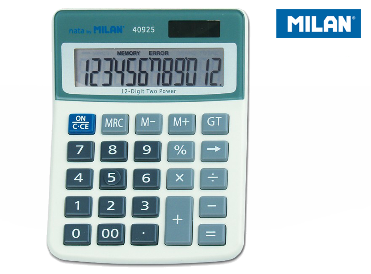 12-cyfrowy kalkulator. 3 klucze pamięci i pierwiastek kwadratowy. Podwójne zasilanie: ogniwo słoneczne i bateria 1,5 V. Automatyczne wyłączanie. Wymiary kalkulatora: 13 x 10 x 1,5 cm.