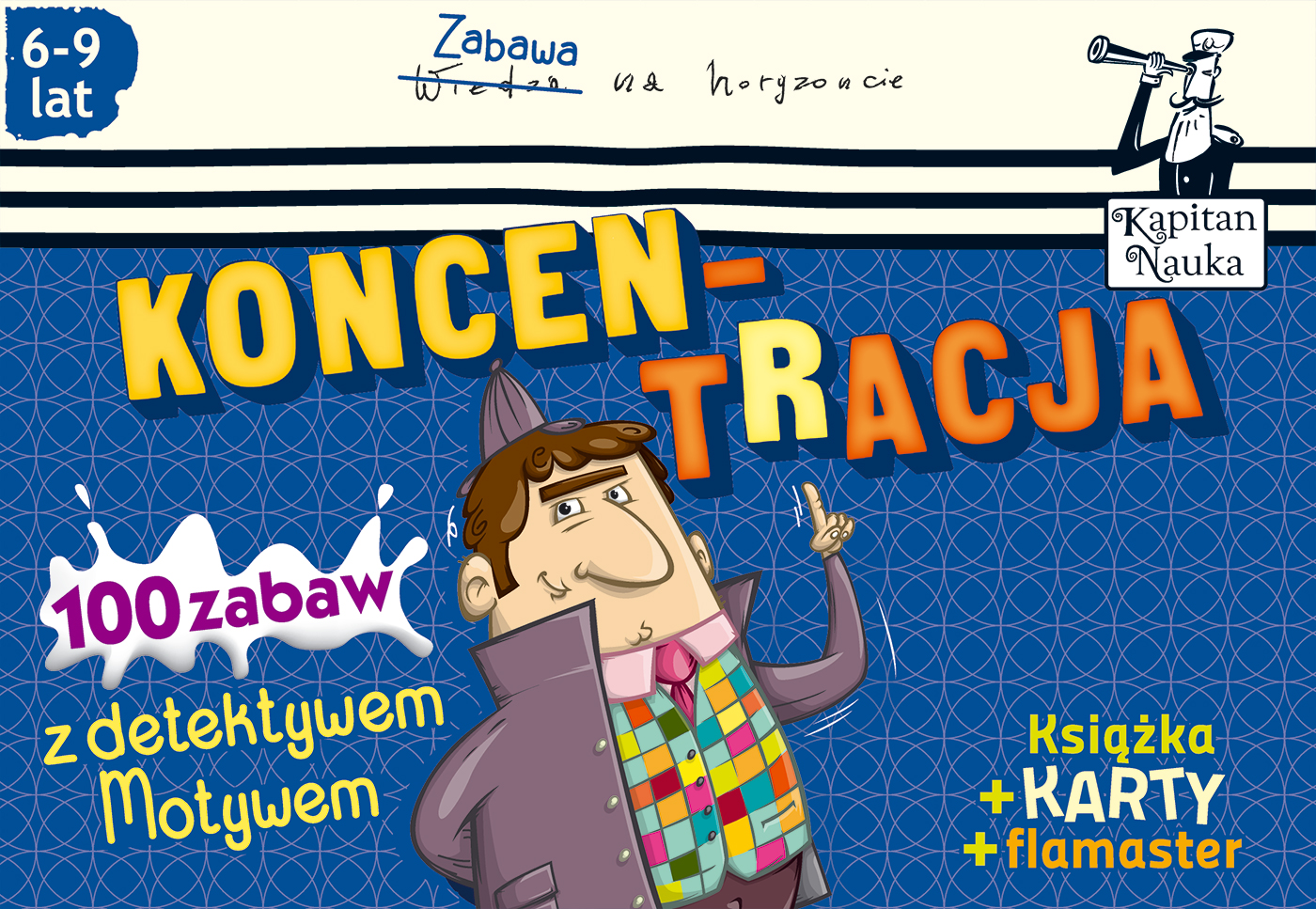 Koncentracja 100 zabaw z detektywem Motywem to wyjątkowy zestaw dla dzieci w wieku 6-9 lat. Składa się z książki dla opiekunów oraz 48 dwustronnych, zmywalnych kart z zadaniami dla dzieci. W książce autorstwa doświadczonej psycholożki opiekunowie i rodzice znajdą przydatne informacje i wskazówki, jak wspierać rozwój koncentracji uwagi u dzieci w wieku wczesnoszkolnym.