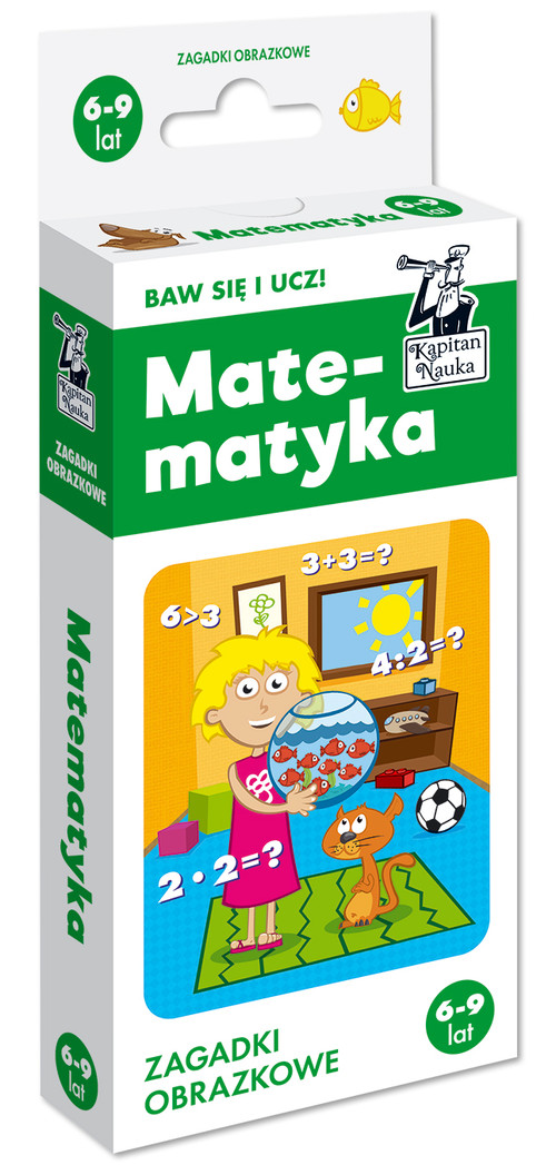 Książeczka Matematyka 6–9 lat. Zagadki obrazkowe zawiera niemal 100 wciągających zabaw o różnym stopniu trudności, polegających na przeliczaniu, dodawaniu, odejmowaniu, mnożeniu, dzieleniu, rozpoznawaniu figur geometrycznych, określaniu czasu i kierunków oraz porównywaniu przedmiotów. Polecenia matematyczne odnoszą się do sytuacji bliskich dzieciom, np. zakupu zabawki lub książki z oszczędności, podziału rzeczy między rodzeństwo czy przygotowania prostej potrawy na podstawie przepisu. Na każdej stronie znajdują się dwa zadania, a na odwrocie karty – odpowiedzi.