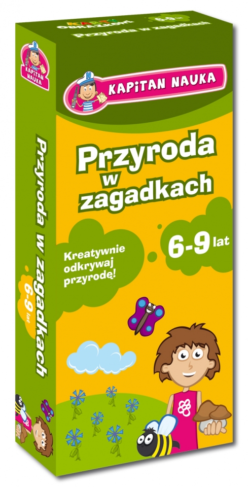 Karty obrazkowe Przyroda w zagadkach:- odkrywają przyrodę poprzez zabawę- rozbudowują zasób słownictwa- poszerzają wiedzę o świecie- przygotowują do lekcji przyrody w szkoleKolorowe karty z zagadkamiZestaw dwustronnych kart obrazkowych został specjalnie opracowany dla dzieci od 6 roku życia. Na awersie znajdują się dwie ilustrowane zagadki, a na rewersie - odpowiedzi do nich. Umożliwia to natychmiastowe sprawdzenie prawidłowego rozwiązania samodzielnie przez dziecko. Karty nie tylko pozwalają poznać najważniejsze zagadnienia przyrodnicze, lecz także ćwiczą spostrzegawczość i pamięć wzrokową oraz rozwijają logiczne myślenie. Świetnie sprawdzą się w domu, w przedszkolu czy szkole. Można zabrać je na spacer lub w podróż - są doskonałym sposobem na naukę i poznawanie wiedzy o świecie w każdej wolnej chwili!112 ciekawych i różnorodnych zagadekZagadki to bardzo skuteczna forma nauki, ponieważ wzbudzają ciekawość, a ich rozwiązywanie sprawia najmłodszym przyjemność. Dzięki nim dzieci nie tylko ćwiczą i utrwalają podstawowe informacje o przyrodzie, lecz także poszerzają wiedzę o świecie. Urozmaicone zadania sprawiają, że dzieci świetnie się bawią, a zabawne ilustracje pomagają im lepiej zrozumieć i zapamiętać wybrane zagadnienia przyrodnicze.