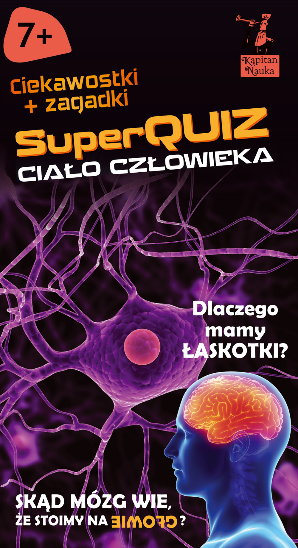 SuperQuiz Ciało człowieka zaspokaja naturalną ciekawość świata i rozbudza apetyt na wiedzę. Mali odkrywcy poznają zmysły, dzięki którym widzimy, słyszymy i poznajemy świat, narządy odpowiadające za oddychanie czy śpiewanie oraz skomplikowane procesy, które zachodzą w organizmie ludzkim. Czy wiesz, skąd nasz mózg wie, że stoimy na głowie, dlaczego mamy łaskotki, dlaczego jedno płuco jest mniejsze niż drugie? Główkuj, aby zdobyć wszystkie punkty!