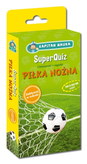 W SuperQuizie PIŁKA NOŻNA znajdziesz:- najsłynniejszych piłkarzy, trenerów i drużyny- niezapomniane mecze i wydarzenia- zasady gry i najważniejsze pojęcia- ciekawostki o Euro 2012SuperQuiz to niezbędnik każdego małego kibica i najlepszy sposób na zdobycie wiedzy o piłce nożnej. Wspólne czytanie ciekawostek i rozwiązywanie zagadek to fantastyczna rozrywka dla całej rodziny! Dla dorosłych to okazja do powtórki wiadomości o futbolu i znakomity pomysł na połączenie zabawy z najmłodszymi z ich edukacją.Wciągające teksty przybliżą dzieciom świat piłki nożnej. Młodzi fani dowiedzą się, jak wyglądała kariera ich ulubionych piłkarzy, m.in. Ronaldo czy Fernando Torresa. Poznają historię światowego futbolu, zasady gry, najciekawsze wydarzenia, turnieje i nagrody. Odkryją ciekawostki o polskiej piłce nożnej, m.in. jaki zawodnik rozegrał najwięcej, bo aż 102 mecze w reprezentacji, kto zyskał tytuł ""Trenera Tysiąclecia"", kiedy odbył się u nas pierwszy mecz piłki nożnej? Zainteresowani historią Euro w Polsce dowiedzą się m.in. ile miejsc liczy Stadion Narodowy w Warszawie.Ponad 200 interesujących zagadek i zaskakujących odpowiedzi sprawi, że nauka stanie się pasjonującą zabawą. Kapitan Nauka wciągnie w fascynujący świat poszerzania wiedzy wszystkie dzieci, nawet te mniej zainteresowane uczeniem się!SuperQuiz PIŁKA NOŻNA sprawdzi się na podczas spotkań z kolegami, na imprezach rodzinnych oraz w indywidualnej zabawie. Książeczkę można zabrać na spacer lub w podróż - jest doskonałym pomysłem na połączenie zabawy z edukacją w każdej wolnej chwili!
