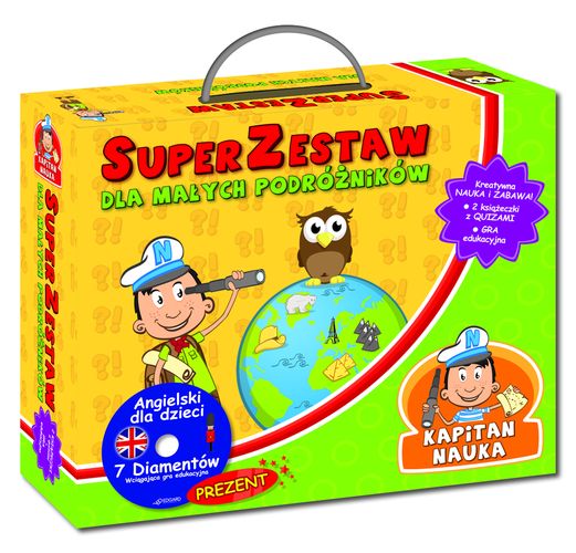 SuperZestaw dla małych podróżników to unikalny edukacyjny pakiet, który zapewnia najmłodszym możliwość aktywnego zdobywania wiedzy o Polsce i świecie poprzez zabawę. Zestaw składa się z dwóch książeczek, które można zabrać na spacer lub w podróż – to doskonały pomysł na połączenie zabawy z edukacją! Dodatkowo do pakietu dołączono w prezencie płytę CD-ROM z wciągającą grą komputerową do nauki języka angielskiego.