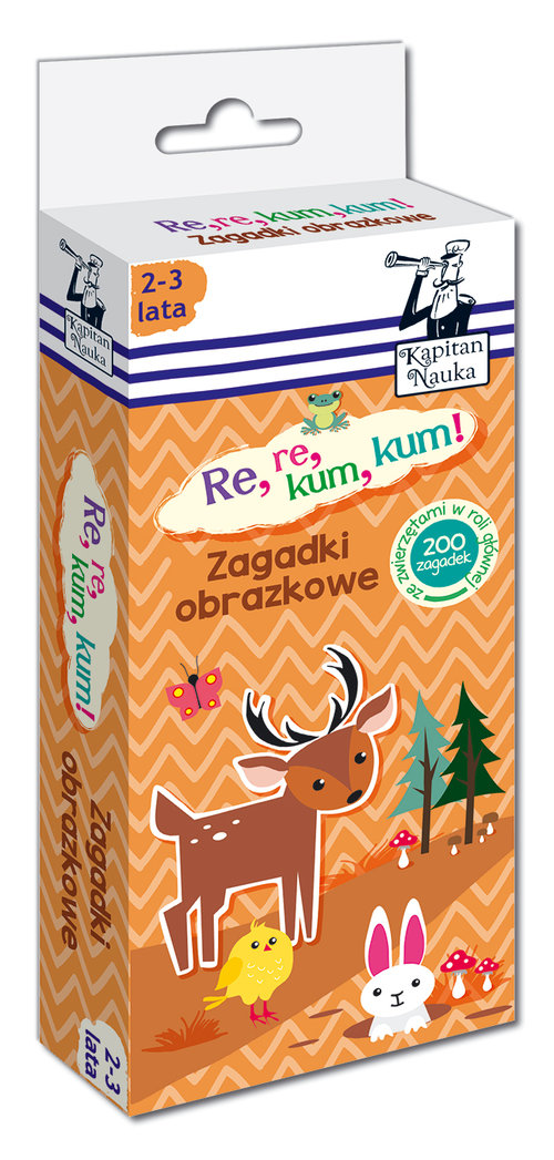 Zagadki obrazkowe Re, re, kum, kum! to wyjątkowa propozycja na wspólne spędzenie czasu dla Ciebie i Twojego dziecka. 200 różnorodnych zagadek uczy myślenia logicznego i wyciągania wniosków, przybliża świat zwierząt, a przede wszystkim stanowi świetną zabawę!