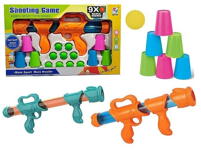 karabin na piłeczki, z zestawem kubeczków do zestrzelenia; 44x6,5x27cm, W/B