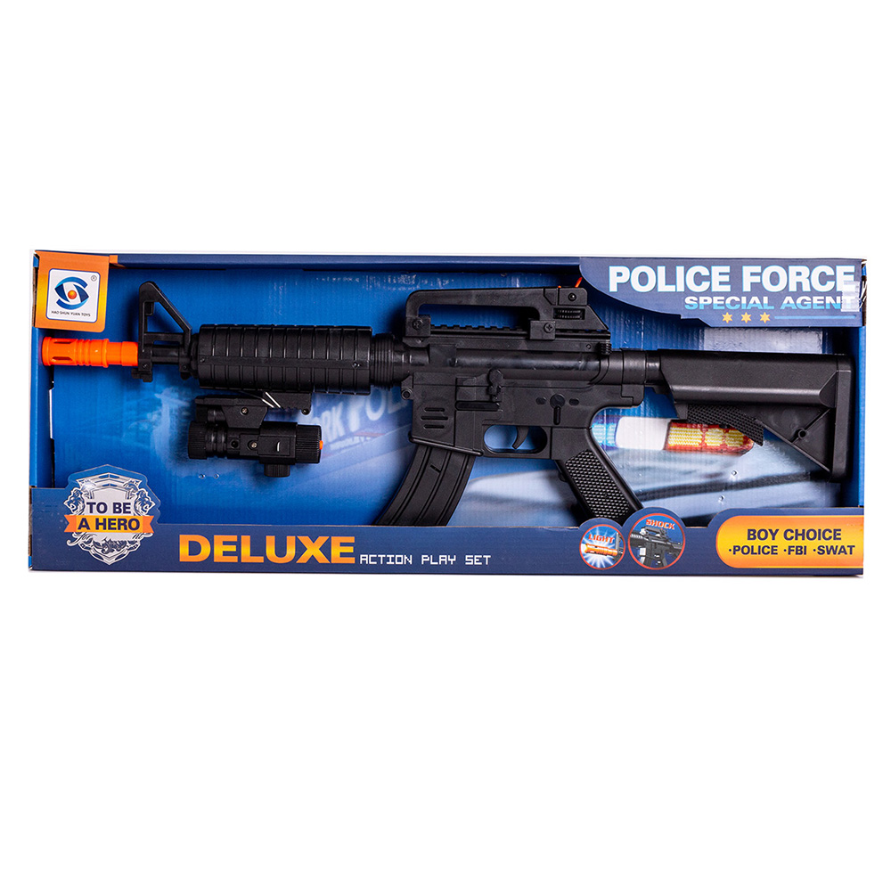 Karabin policyjny światło, dźwięk, zasilanie 2xAA (dołączone)