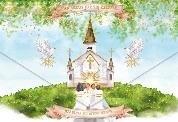 Karnet A5 koperta Komunia Kościółek z dziećmi
