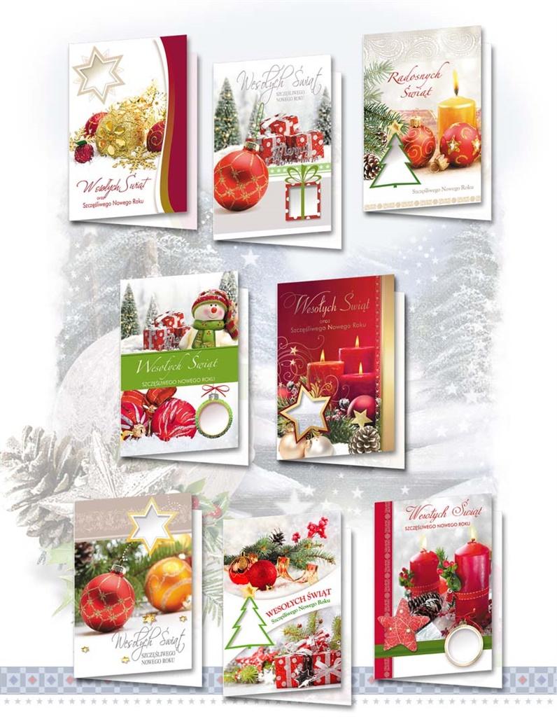Karnet B6 ząbkowany na zewnątrz z kolorowym rewersem i życzeniami. Do karnetu dołączony jest opłatek wklejony wewnątrz w małej kopercie. Pakowany do folii wraz z kopertą w miksie seriami po 10 sztuk.