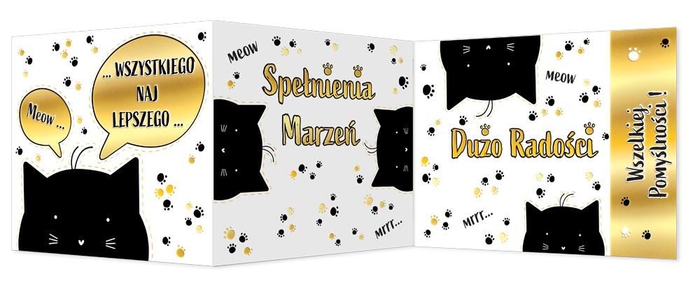 Złocony karnet okolicznościowy w formie harmonijki, koperta w zestawie. Format B6
