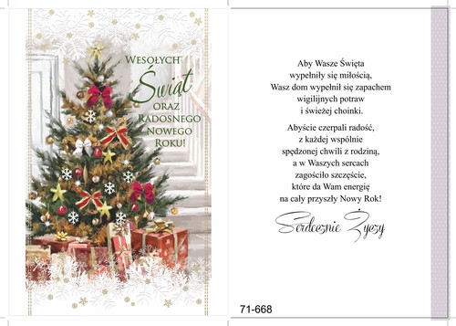 Ozdobny zamykany karnet z życzeniami na Boże Narodzenie.