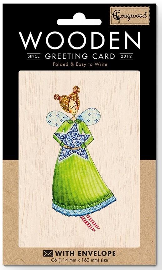 Karnet drewniany C6 + koperta Anioł z kwiatem