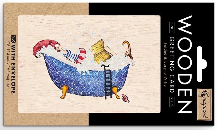 Karnet drewniany C6 + koperta Kobieta w kąpieli