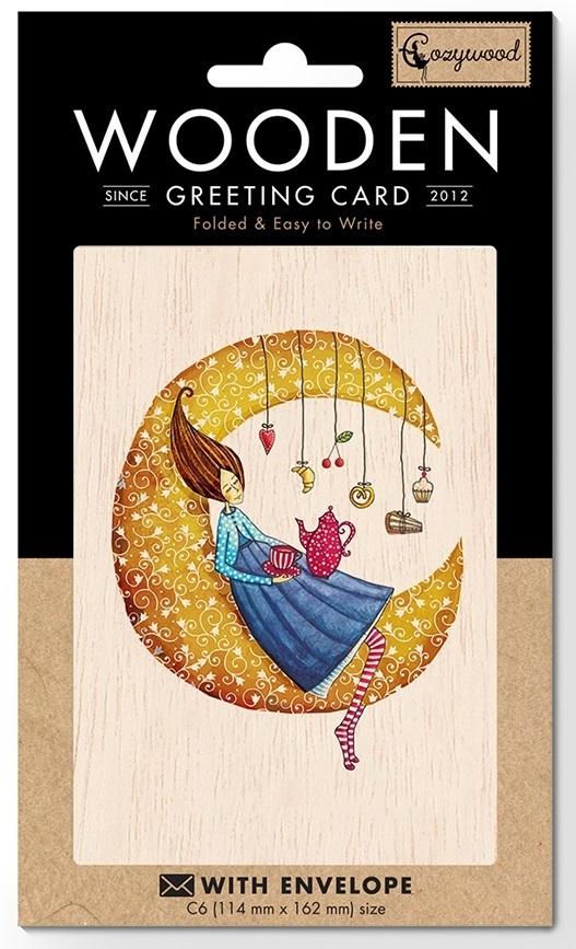 Opakowanie Karnet drewniany C6 + koperta Księżyc