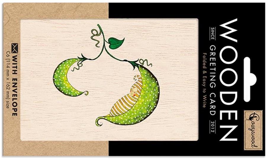 Opakowanie Karnet drewniany C6 + koperta Narodziny fasolka