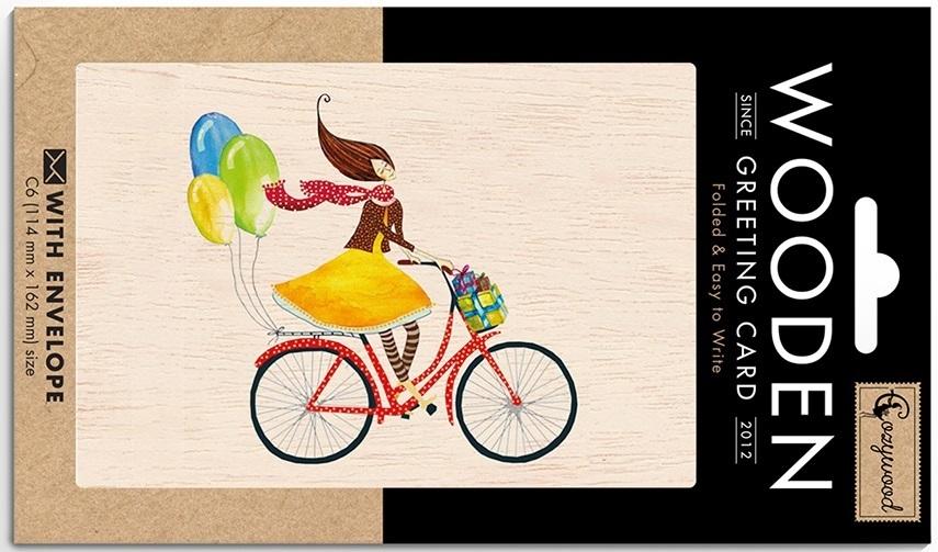 Opakowanie Karnet drewniany C6 + koperta Rower z balonami