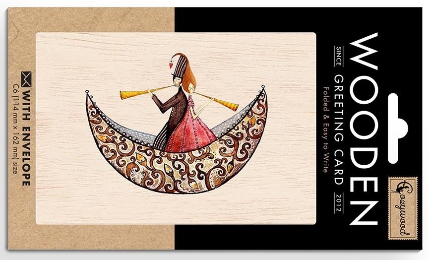 Drewniany karnet w formacie C6 z kopertą. Wyprodukowany na Litwie.