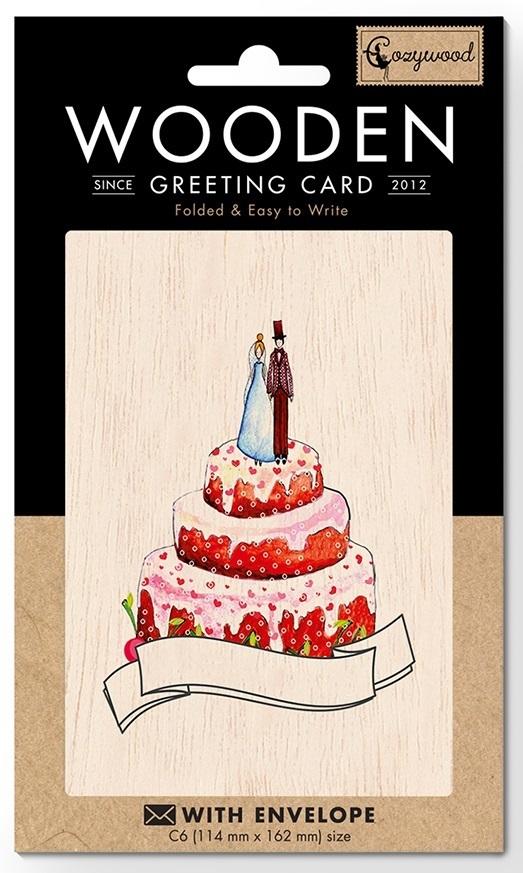 Opakowanie Karnet drewniany C6 + koperta Ślub tort