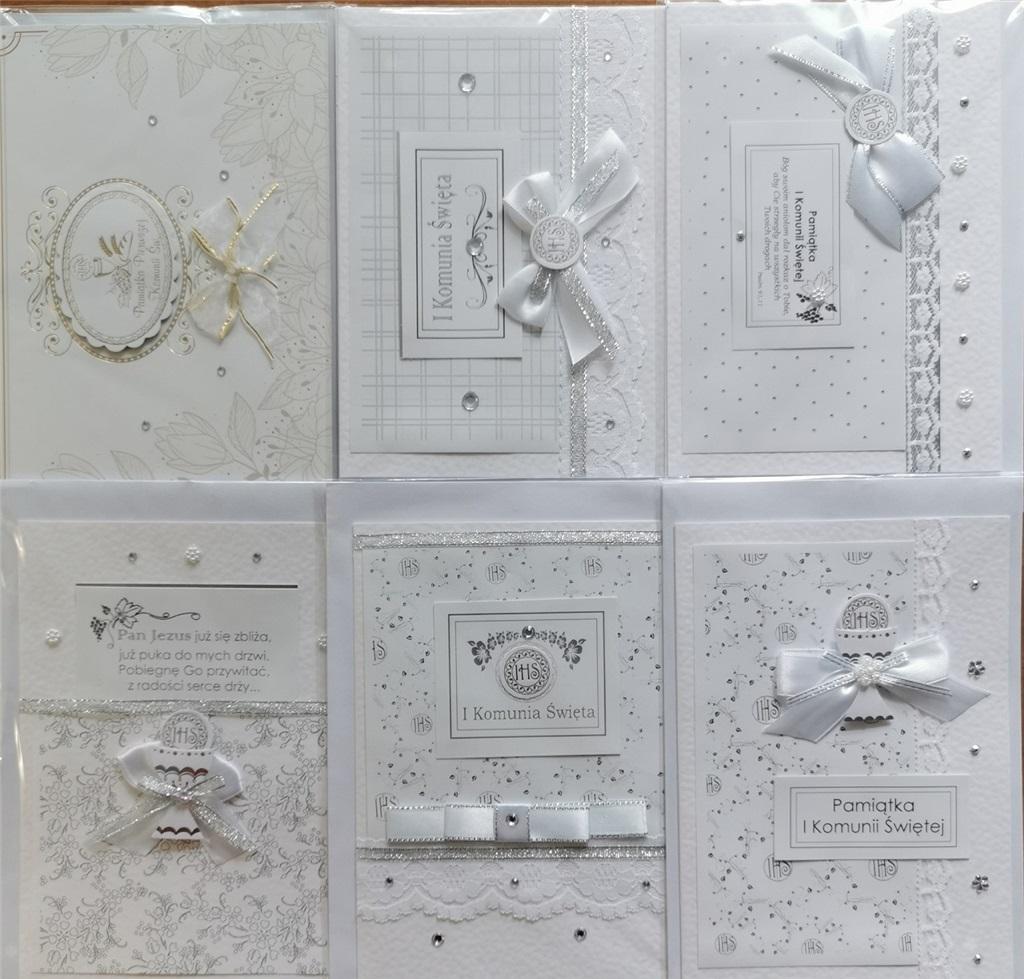 Karnet ręcznie robiony na Komunię w formacie C5 + koperta.